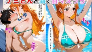 ナミとハゲデブおやじの子作りデートに密着、というイメージで作成されたイラスト集です。私服、制服コス、水着、ボディコン、下着、全裸のナミを収録。最後はホテルで種付けされてナミは妊娠。当然ながらボテ腹イラストも含まれています。